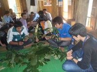 植物を調べ、使い方をまとめている村の青年たち農家の皆さんが農業を続けながら友人や家族と楽しく暮らしていくためには、地域の経済を良くしていくことと同時に、暮らしを支えている地域の自然を守り、人々の心のよりどころとなる地域の文化や知恵、人々の和を大事にしていくことが必要です。